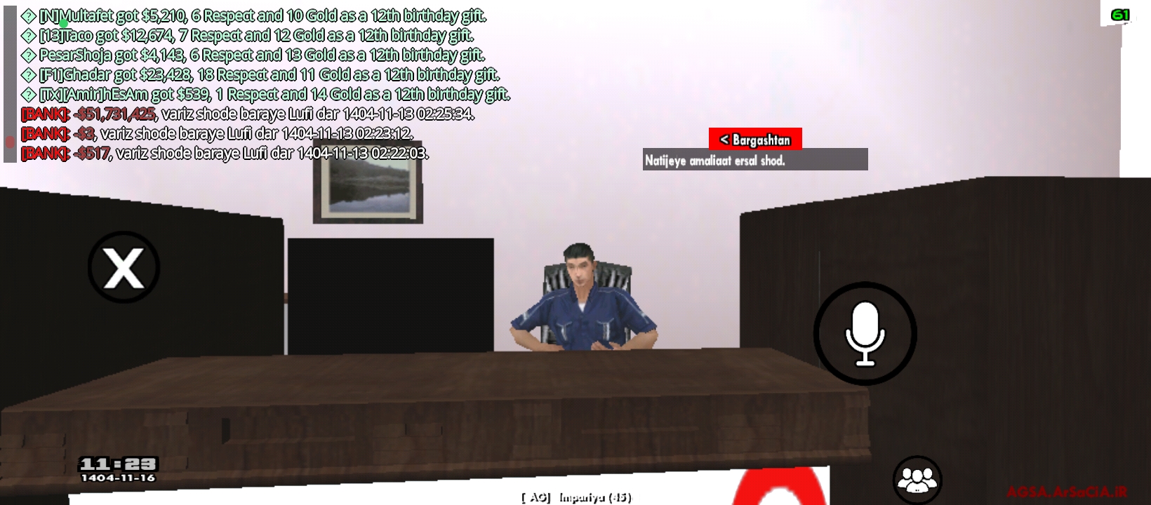 Impariyaa ارسال شده در پنجشنبه در 08:00 اشتراک گذاری ارسال شده در پنجشنبه در 08:00 فرم: • عکس سایز کوچک شما از "اطلاعات کاربری" از طریق کنترل پنل: • عکس سایز کوچک کسی که از او شکایت دارید از "اطلاعات کاربری" از طریق کنترل پنل: • عکس سایز کوچک از "اطلاعات کاربری" از شاهدین از طریق کنترل پنل: - • توضیحات: سلام و درود من امروز اومدم تو اکانتم دیدم هیچی ندارم و ماشین هام نیست ماشین هام یک دونه لامبورگینی هست و اینفرنوس هاترینگ ساوانا من نبودن با ۱۰۰کی پول • مدارک (فیلم یا عکس): لینک به دیدگاه https://forum.arsacia.ir/topic/103176-%DA%A9%D9%84%D8%A7%D9%87%D8%A8%D8%B1%D8%AF%D8%A7%D8%B1%DB%8Clufi/ به اشتراک گذاری در سایت های دیگر تنظیمات بیشتر اشتراک گذاری...