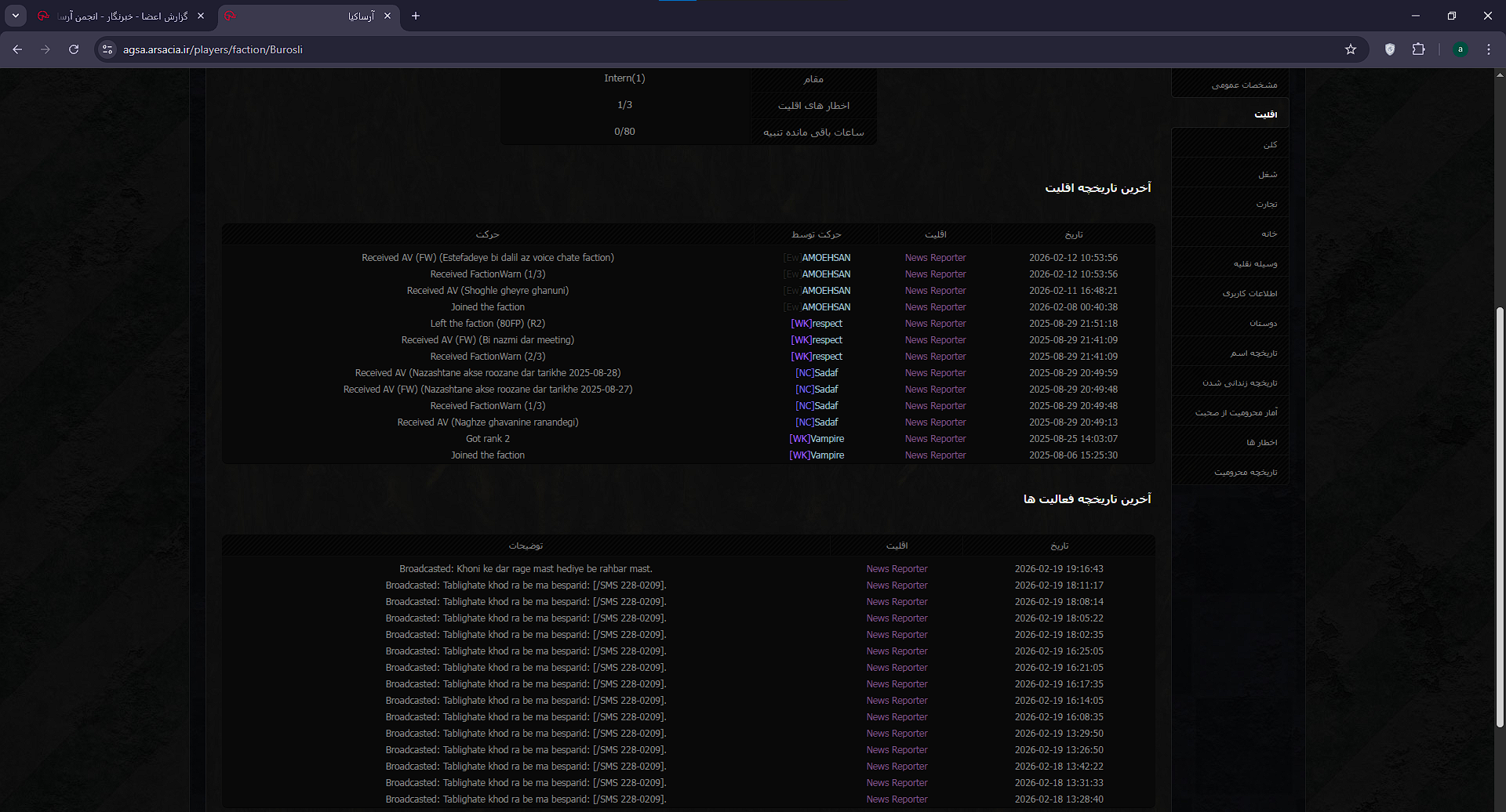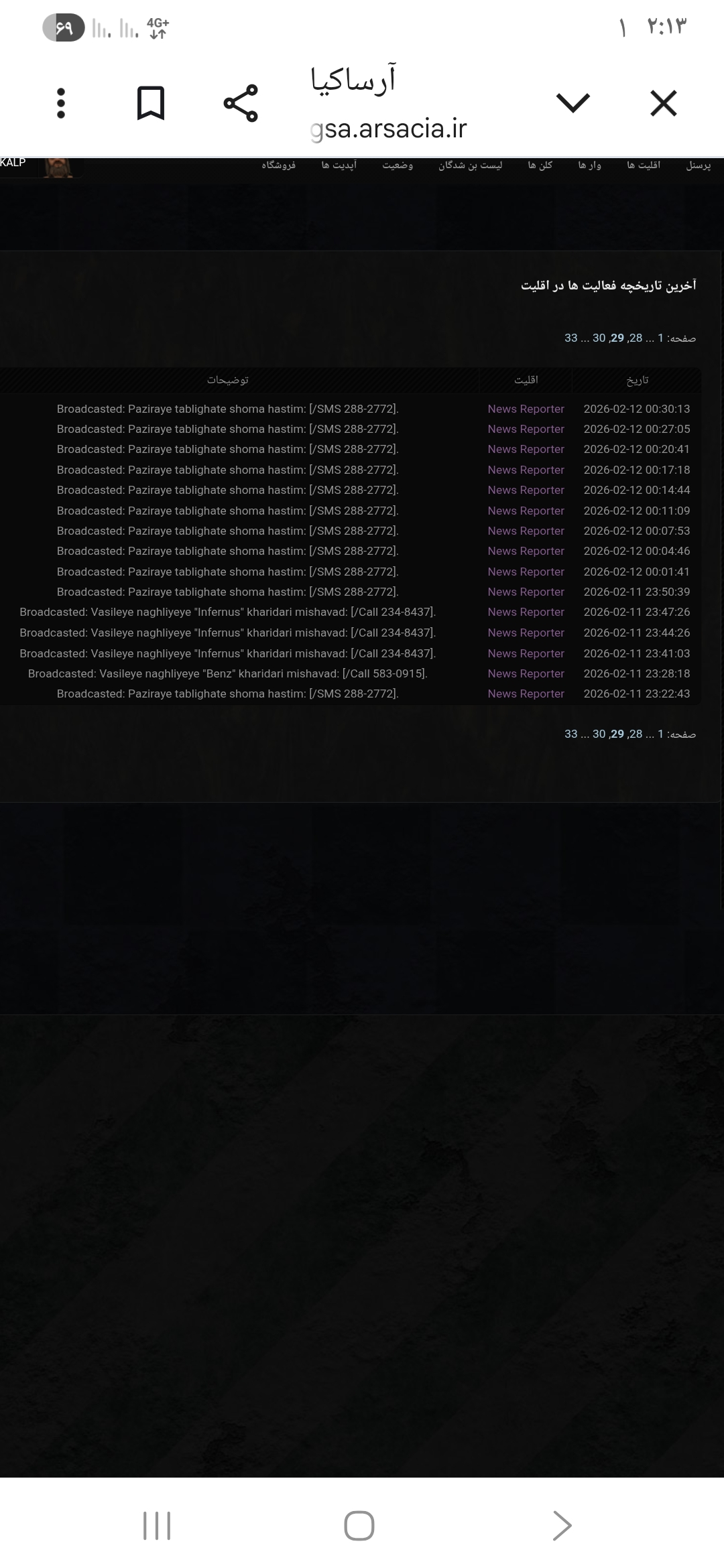 AmoEhsan ارسال شده در 13 ساعت قبل اشتراک گذاری ارسال شده در 13 ساعت قبل 3 دقیقه قبل، KnoT گفته است: • عکس از اطلاعات کنترل پنل شما: • عکس از اطلاعات کنترل پنل شخصی که می خواهید گزارش دهید: • توضیحات: با سلام و درود بازیکن مبرطه اقدام به دادن بد نیوز نموده. • شاهد ها: - • مدرک/عکس یا فیلم: https://uploadkon.ir/uploads/c25119_26Screenshot-2026-02-19-192345.png با سلام، تایید شد با سلام و احترام @VenT شکایت شما به درخواست خودتان رد شد @iMohammadAmin شکایت شما تایید شد @313 شکایت شما تایید شد @Mohsen1011 شکایت شما تایید شد. لینک به دیدگاه https://forum.arsacia.ir/topic/13-%DA%AF%D8%B2%D8%A7%D8%B1%D8%B4-%D8%A7%D8%B9%D8%B6%D8%A7/page/60/#findComment-1087551 به اشتراک گذاری در سایت های دیگر تنظیمات بیشتر اشتراک گذاری...