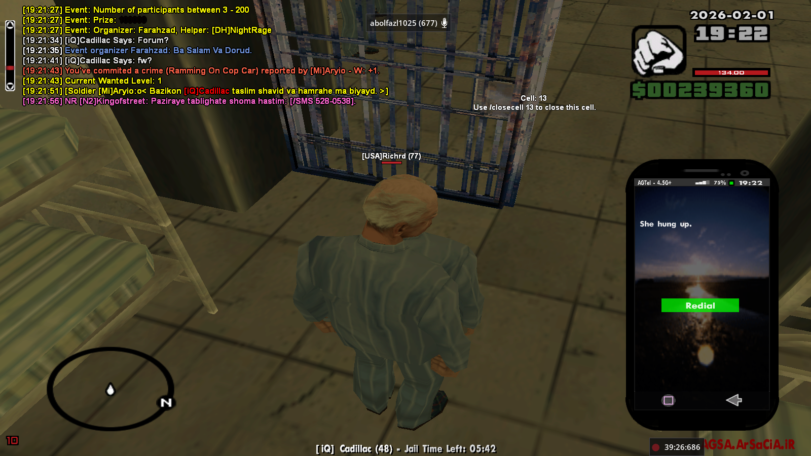 TheSmarTy ارسال شده در شنبه در 14:06 اشتراک گذاری ارسال شده در شنبه در 14:06 عکس از اطلاعات کنترل پنل شما: • عکس از اطلاعات کنترل پنل شخصی که می خواهید گزارش دهید: • توضیحات: :ایشون هم license های Driving و weapons رو ساسپند کرد و 3وانتد کرد باید 300FP بشه • شاهد ها: - • مدرک/عکس یا فیلم: https://onlineshin.ir/uploads/1769868310881.zip عکس از اطلاعات کنترل پنل شما: • عکس از اطلاعات کنترل پنل شخصی که می خواهید گزارش دهید: • توضیحات: : من AFK بودم باید cmd /killonafk میزد ولی MS/ داد و وانتد کیل کرد • شاهد ها: - • مدرک/عکس یا فیلم: https://onlineshin.ir/uploads/1769869259621.zip 1 The KillerS لینک به دیدگاه https://forum.arsacia.ir/topic/34-%DA%AF%D8%B2%D8%A7%D8%B1%D8%B4-%D8%A7%D8%B9%D8%B6%D8%A7/page/201/#findComment-1058200 به اشتراک گذاری در سایت های دیگر تنظیمات بیشتر اشتراک گذاری...