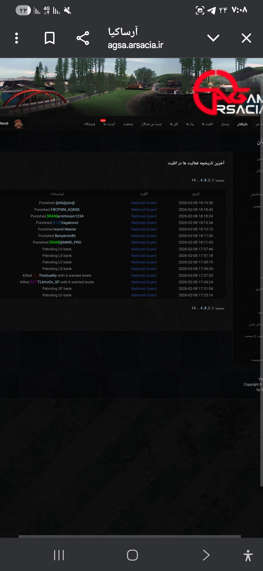 Ever ارسال شده در 3 ساعت قبل اشتراک گذاری ارسال شده در 3 ساعت قبل • عکس از اطلاعات کنترل پنل شما: • عکس از اطلاعات کنترل پنل شخصی که می خواهید گزارش دهید: • توضیحات: یک عضو نمی تواند طی 60 دقیقه دو بار یک بانک مشخص را پشت سر هم BankPatrol/ بزند. (مجازات: Faction Warn) بانک پاترول SFBANK در تاریخ : 2026-02-10 - 12:53:15 و دیگری 2026-02-10 13:17:30 SF BANK • شاهد ها: - • مدرک/عکس یا فیلم: Click • عکس از اطلاعات کنترل پنل شما: • عکس از اطلاعات کنترل پنل شخصی که می خواهید گزارش دهید: • توضیحات: درود؛ بانک پاترول اول در تاریخ : 2026-02-08 17:39:26 دیگری در تاریخ : 2026-02-08 17:51:18 یک عضو نمی تواند طی 60 دقیقه دو بار یک بانک مشخص را پشت سر هم BankPatrol/ بزند. (مجازات: Faction Warn) • شاهد ها: • مدرک/عکس یا فیلم: Click لینک به دیدگاه https://forum.arsacia.ir/topic/39-%DA%AF%D8%B2%D8%A7%D8%B1%D8%B4-%D8%A7%D8%B9%D8%B6%D8%A7/page/148/#findComment-1080206 به اشتراک گذاری در سایت های دیگر تنظیمات بیشتر اشتراک گذاری...
