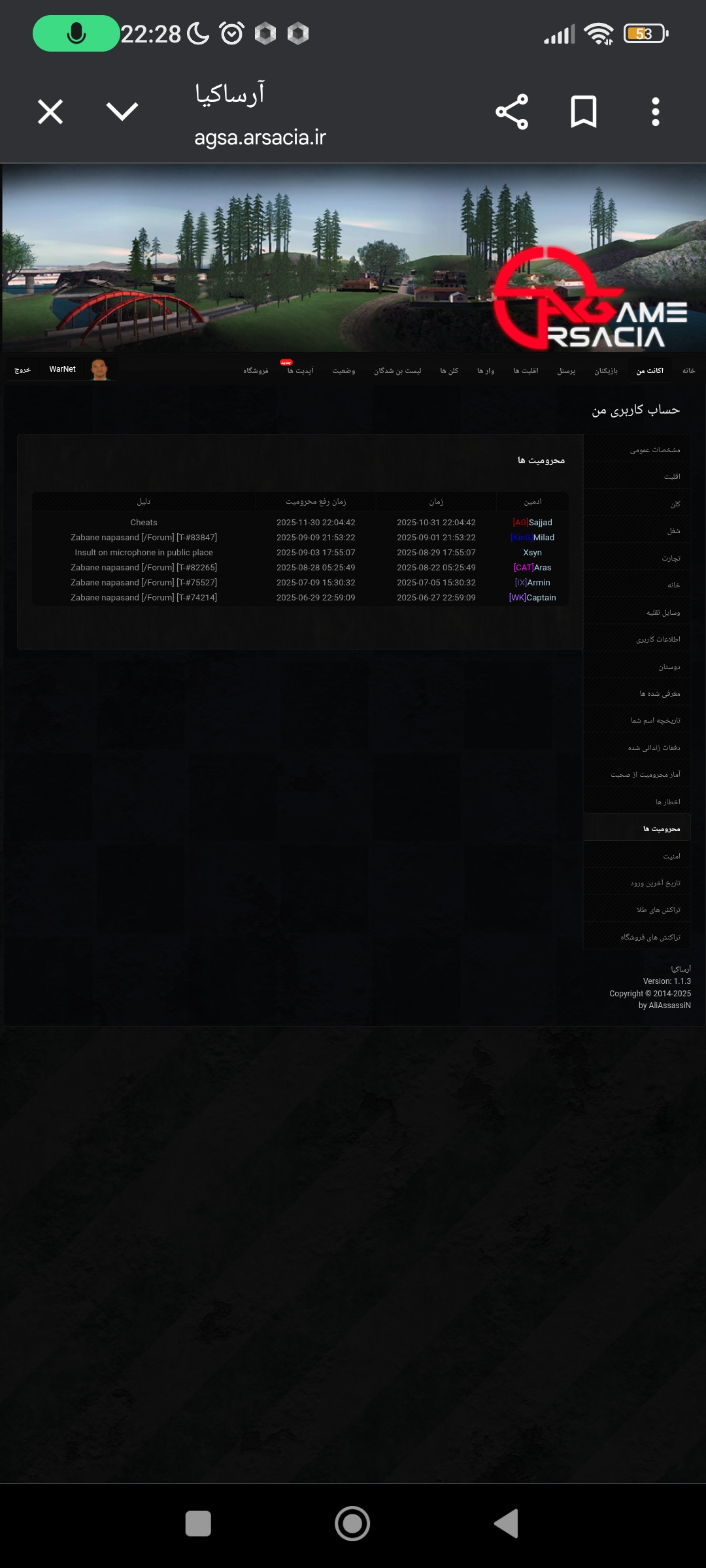 WarNet ارسال شده در جمعه در 19:01 اشتراک گذاری ارسال شده در جمعه در 19:01 • عکس سایز کوچک شما از "اطلاعات کاربری" از طریق کنترل پنل: https://agsa.arsacia.ir/players/general/WarNet][/url] • عکس سایز کوچک کسی که از او شکایت دارید از "اطلاعات کاربری" از طریق کنترل پنل: • عکس سایز کوچک از "اطلاعات کاربری" از شاهدین از طریق کنترل پنل: • توضیحات: سلام درود بر شما آقای سجاد منو بن چیت دادن ولی منی که چیت نزادم چرا بن خوردم • مدارک (فیلم یا عکس): https://uploadkon.ir/uploads/8ead31_25Screenshot-2025-10-31-22-28-19-911-com-android-chrome.jpg هر چی خواستیم یا گرون بود یا گناه لینک به دیدگاه https://forum.arsacia.ir/topic/90387-%D8%A8%D9%86-%D8%A8%DB%8C%E2%80%8C%D8%AF%D9%84%DB%8C%D9%84sajjad/ به اشتراک گذاری در سایت های دیگر تنظیمات بیشتر اشتراک گذاری...