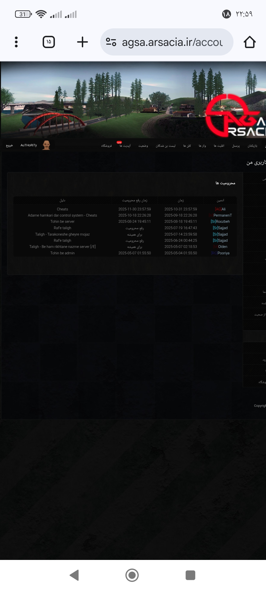 VaNeX ارسال شده در شنبه در 14:15 اشتراک گذاری ارسال شده در شنبه در 14:15 در ۱۴۰۴/۸/۱۶ در 08:41، mamad293 گفته است: منو کیل میکنن عصبی میشم فحش میدم درجا میزارن forum از این ادما زیاد هست در کل ... ... ... 3 تا 60 دقیقه زندانی شدم توسط ادمین بخواطره نان ارپی 13 بار از صحبت کردن محروم شدم 3 بار هم بن شدم و 1 دونه اخطار بخواطره استفاده از باگ که پلیس تا اخر عمرش هم نمیتونه منو بگیره سر جمع 20 بار مجازات شدم یه رکورد طلایی هم که دارم درجا بعد از اینکه از بن در اومدم دوباره بن شدم کمتر از 2 روز هیچوقت درک نمیکنم که چجوری واقعا بن شدم 20 بار ما که با 6تا اکانت تقریبا با هر اکانت+5 بار تعلیق شدیم نقل قول Think Big, Fight Hard Live Simple لینک به دیدگاه https://forum.arsacia.ir/topic/90904-%DA%86%D9%86%D8%AF-%D8%A8%D8%A7%D8%B1-%D8%A8%D9%86-%D8%B4%D8%AF%DB%8C%D8%AF%D8%9F/page/2/#findComment-942533 به اشتراک گذاری در سایت های دیگر تنظیمات بیشتر اشتراک گذاری...