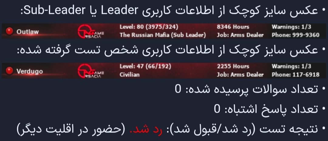 DrDep ارسال شده در 5 ساعت قبل اشتراک گذاری ارسال شده در 5 ساعت قبل با سلام و درود خدمت شما دوست عزیز شکایت شما رد شد شما در تاریخ 4 November در اولویت اقلیت TRM حضور داشتید ولی فردای آن روز در اقلیت LSV ورود کردید طبق قوانین در صورتی که در یک اقلیت دیگه حضور داشته باشید بقیه اولویت بندی شما ابطال می گردد در تاریخ بنویسید مارو در اذان صبح اعدام می کنند در اذان شب به گلوله می بندند کسانی که خدایشان رحمان پیامبرشان مهربان و امامشان مظلوم بوده لینک به دیدگاه https://forum.arsacia.ir/topic/92439-%D8%B1%D8%AF-%D8%AA%D8%B3%D8%AA-outlaw/#findComment-953851 به اشتراک گذاری در سایت های دیگر تنظیمات بیشتر اشتراک گذاری...